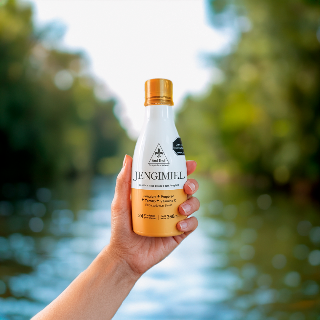 Jengimiel es un jarabe natural para la gripa formulado con jengibre, propóleo, tomillo y vitamina C. Su presentación líquida permite rápida absorción, apoyando el sistema respiratorio y las defensas naturales del organismo. Sabor agradable a jengibre. Frasco x 360 ml.